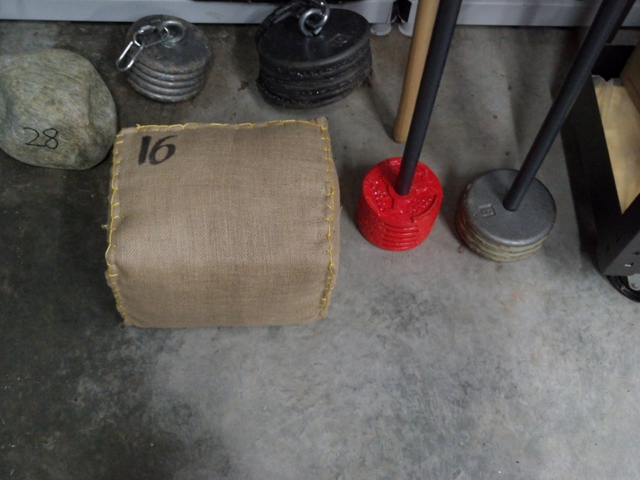 16# stone - threw a few toes-to-board style and a few Braemar style. Tried to do some glides and the honest truth is that I'm just an uncoordinated man. Need a LOT more practice. Best throw was 24'.
