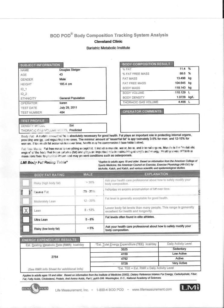 The funny thing is how the Doc giving the test (not the same one who told me to loose 50 more), said "Wow" about 7-8 times, while going over the results.